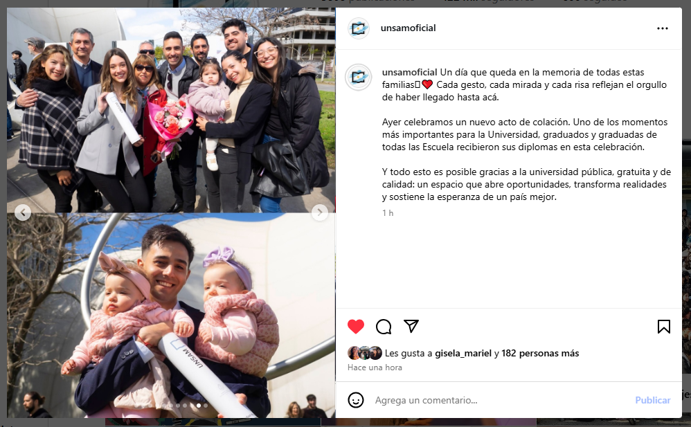 En el acto de la mañana recibieron su título 103 egresadxs de las escuelas de Economía y Negocios (EEyN), Hábitat y Sostenibilidad (EHyS), Ciencia y Tecnología (ECyT), Arte y Patrimonio (EAyP), Interdisciplinaria de Altos Estudios Sociales (EIDAES) y Política y Gobierno (EPyG), y del Instituto de Ciencias de la Rehabilitación y el Movimiento (ICRM). En tanto, en el acto de la tarde, recibieron su diploma 151 graduadxs de la Escuela de Humanidades (EH).